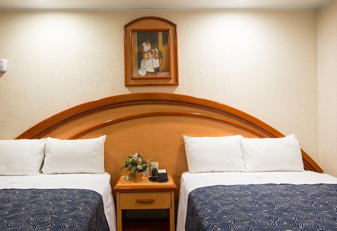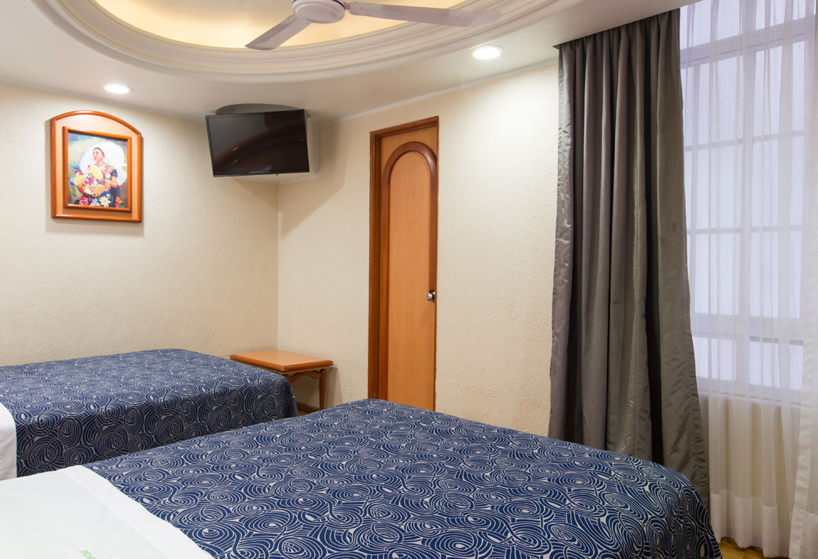 The double room has 2 single beds and has a capacity for 2 persons, it is very comfortable with a modern and practical style that projects a pleasant atmosphere. Features free WI-FI, 32" flat screen with cable TV, vanity table, fully- equipped bathroom with hair dryer, closet, safety deposit box, telephone, room service, wake- up call service, ceiling fan and daily housekeeping service.